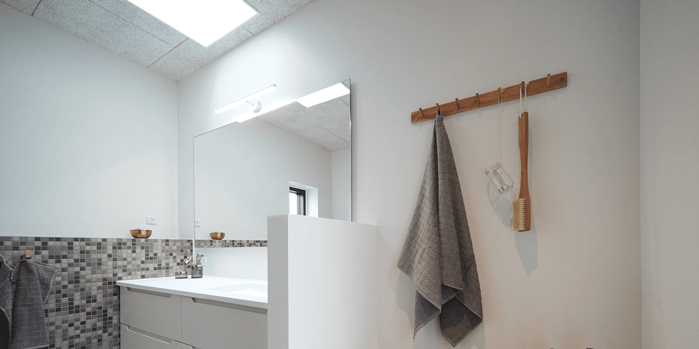 Mange bruger relativt meget tid på badeværelset, hvorfor det er vigtigt at prioritere lyset. Dagslys er ofte det bedste lys, når du skal gøre dig klar til en ny dag. De fleste ønsker matteret glas i vinduerne for at undgå indkigsgener – derfor er ovenlysvinduer en god løsning. På et badeværelse hvor det ikke er muligt med et almindeligt facadevindue, kan et ovenlysvindue med fjernbetjening samtidig fungere som ekstra ventilationsmulighed.