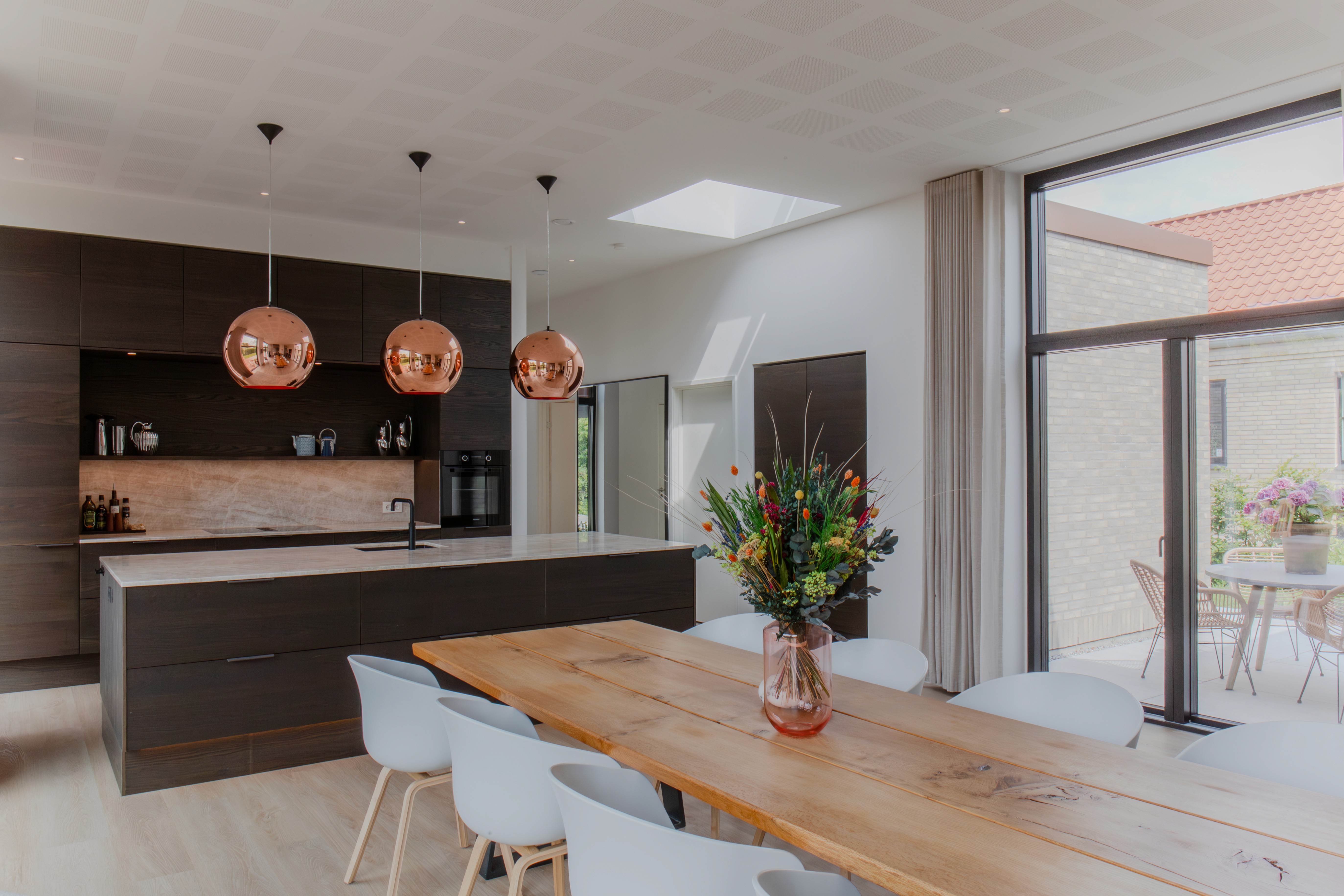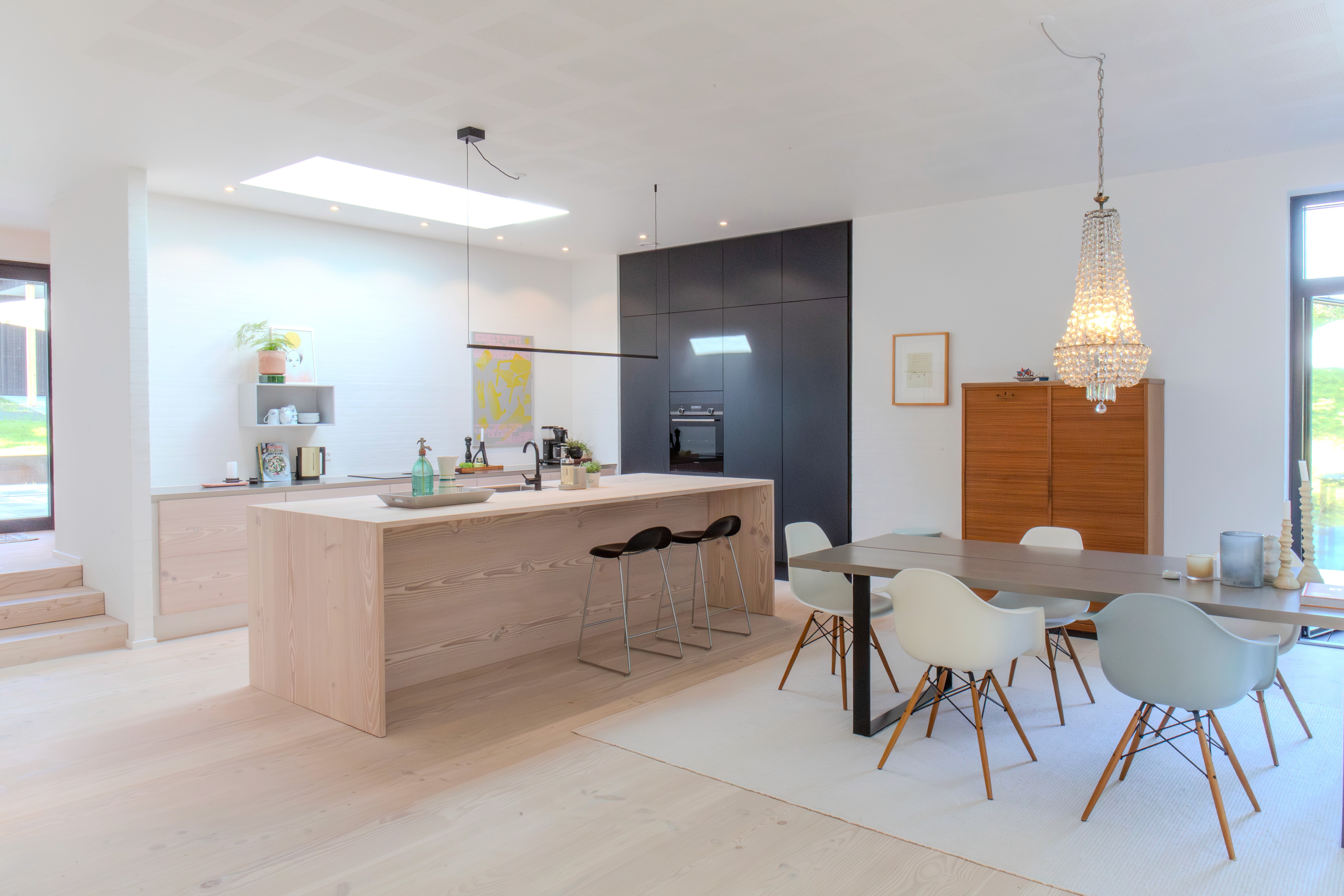 Det rum, der bliver brugt absolut mest i vores nye huse, er køkken-alrummet - husets hjerterum. Rummet samler familien om morgenmaden, det indbyder til eftermiddagssnak, dagens begivenheder gennemgås under madlavningen, og mens aftensmaden spises, tales og hygges der. Derfor har køkkenet i dag en central placering i boligen.