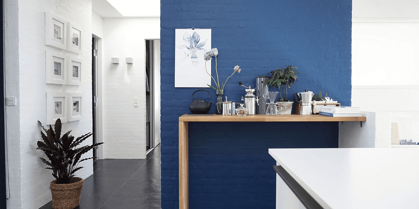 Sort og hvid har længe været de dominerende farver, når det kommer til boligindretning i Skandinavien, men det kan samtidig virke meget minimalistisk og koldt. De markante kontraster kan du bløde op med en fin farve, som giver modspil til det minimalistiske udtryk. Det kan være med til at skabe en mere rolig, hyggelig og sammenhængende indretning. Det behøver ikke at være mere end en enkel væg, der vælges i en anden farve, det kan også blot være en delvist malet væg, hvor man eksempelvis stopper på midten af væggen. Sørg blot for at farvesammensætningen mellem malingen og dine møbler og dit interiør harmonerer.