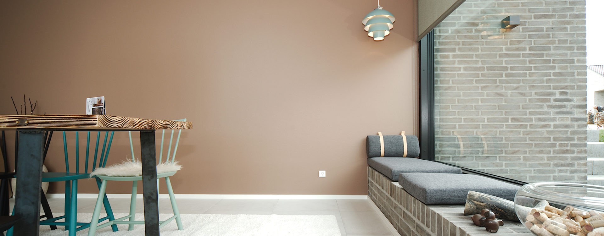 Tænk samtidig farver ind i forhold til rummets funktion. I rum, hvor du opholder dig i kortere tid, som eksempelvis i hall’en eller i en trappeopgang, kan man forsøge sig med en stærk og dominerende farve, hvorimod i soveværelset, hvor man skal falde til ro og tilegne sig en god nattesøvn, er det en god idé at vælge en mere afdæmpet og rolig farve. Nedenfor har vi spurgt Annette fra Dyrup omkring farvevalg i de enkelte rum.
