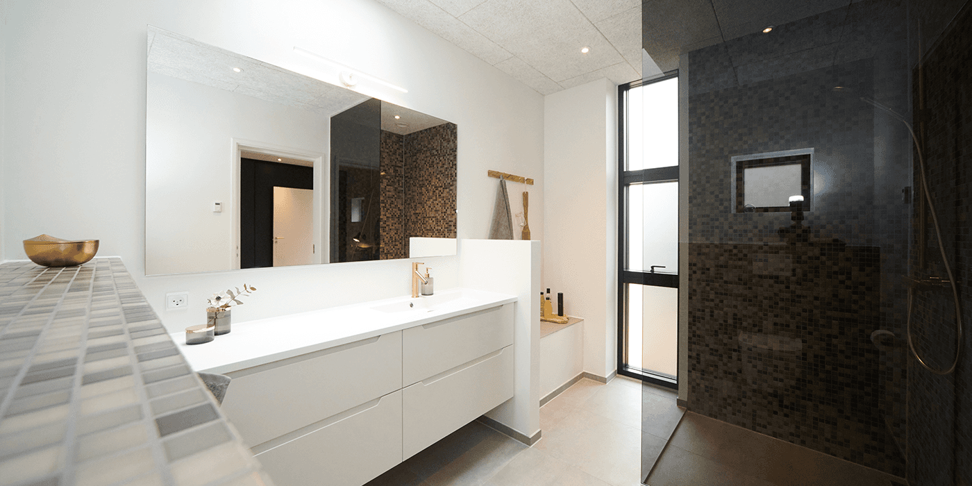 I de fleste huse, som vi bygger, giver vi badeværelset plads. Plads til at sætte fokus på det måske vigtigste gøremål i hverdagen – nemlig velvære. Det er tiden under bruseren eller i badekaret, der giver plads til at tænke over alt og ingenting. Det er her, du har tid til at pleje dig selv. Skønne og behagelige omgivelser er et must til at komme nemmere ned i gear. Til at koble af i en ellers hektisk hverdag.